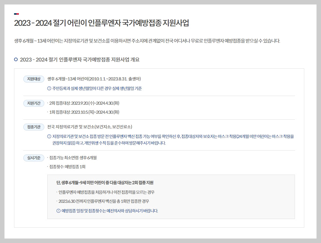 ◎ 생후 6개월부터 만 13세 어린이 (2010. 1. 1 - 2023. 8. 31 출생아)